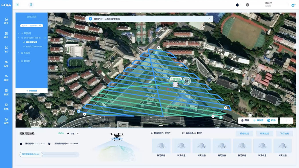 通過任務的確立,一鍵自動規劃最佳航線,減少飛行路線上的不確定性,提前規避已知故障,增加飛行效率