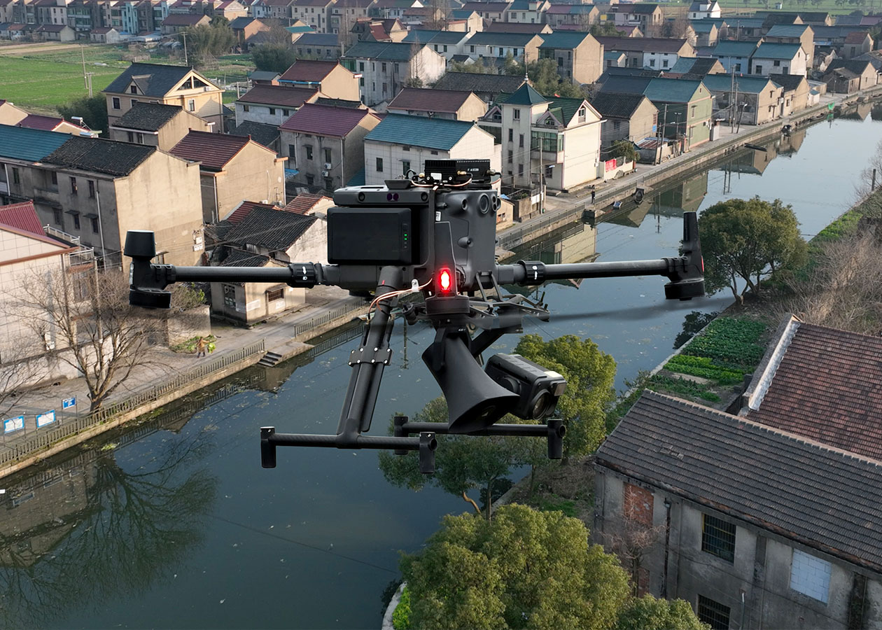 支持可見光、熱成像等數(shù)據(jù)影像信息采集,智能分析;支持掛載喊話器,實(shí)時(shí)遠(yuǎn)程喊話。